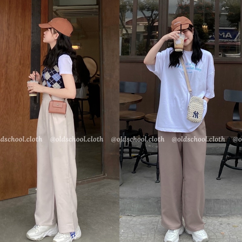 Quần Baggy công sở nữ cạp cao liền phối 2 cúc - chất vải tuyết mưa - cực tôn dáng mặc đi làm chơi học đều xinh
