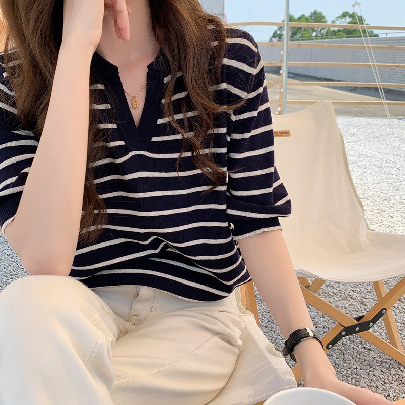 Áo Dệt Kim Tay Ngắn Cổ Chữ V Phong Cách Hàn Quốc