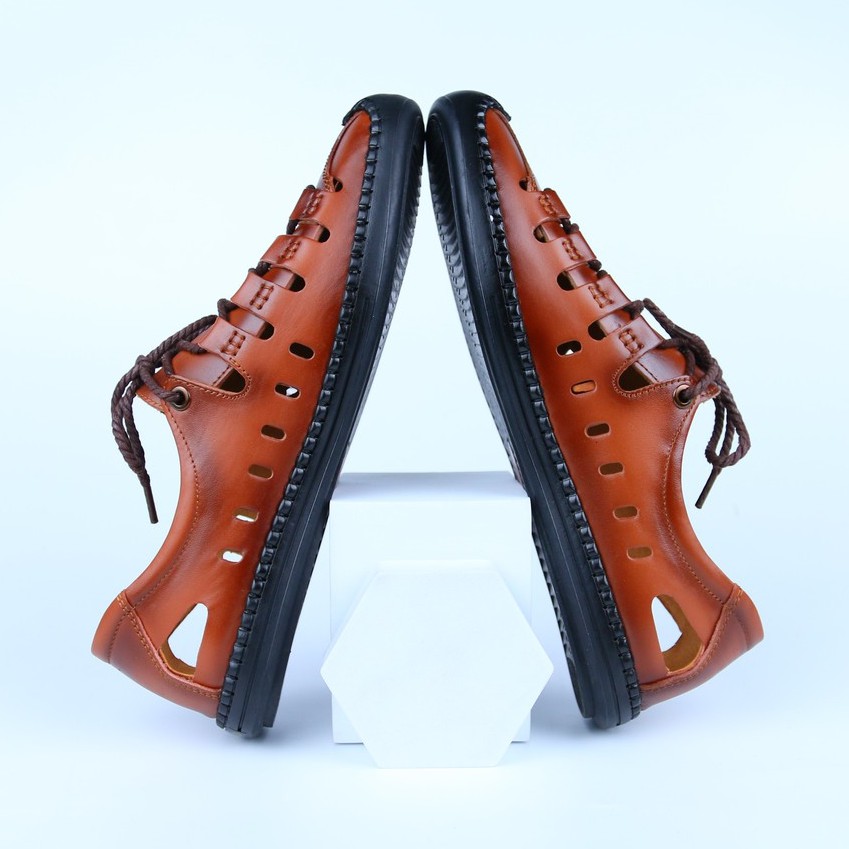 Giày nam mùa hè ST69 dục lỗ thoáng khí chất liệu da bò 100% đế cao su mềm mại , giày rọ -bảo hành 12 tháng free ship